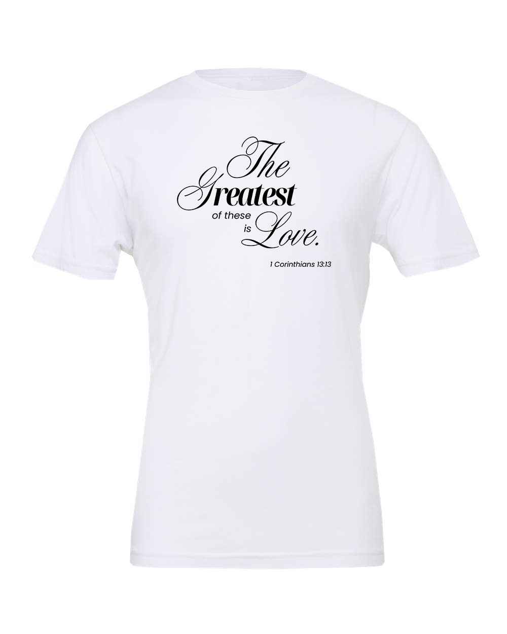 Celebrate the supreme virtue with "THE GREATEST Tee." Featuring 1 Corinthians 13:13, this profound design highlights the enduring power of love above all spiritual gifts. Now more than ever, embody the true nature of Christ by demonstrating that greatest of all virtues—love that never fails.